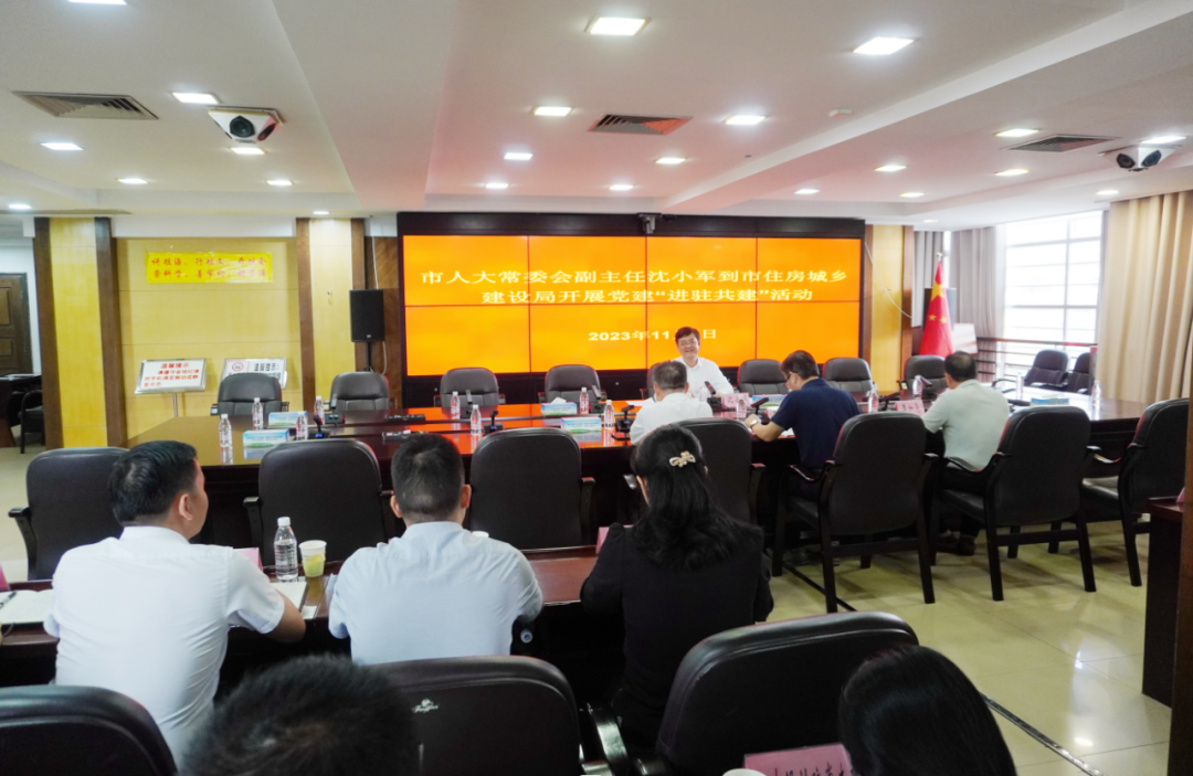 11月8日,市人大常委会副主任沈小军到市住房城乡建设局开展党建“进驻共建”活动并上专题党课。