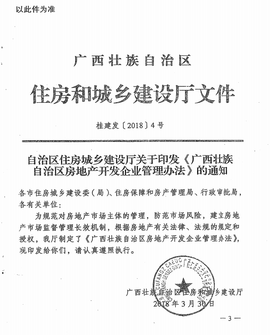 自治区住房城乡建设厅关于印发《广西壮族自治区房地产开发企业管理办法》的通知