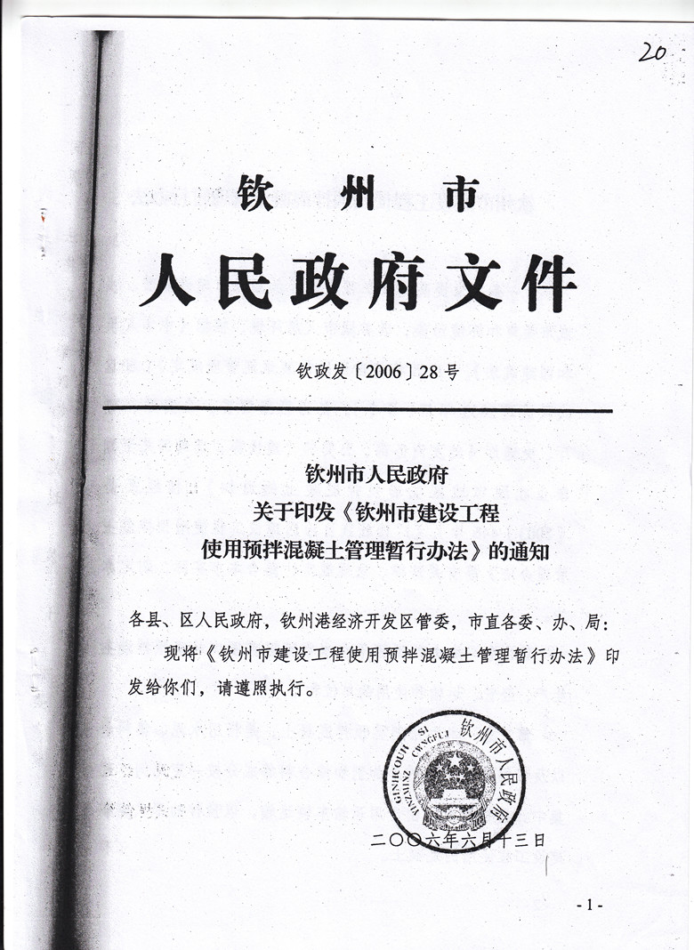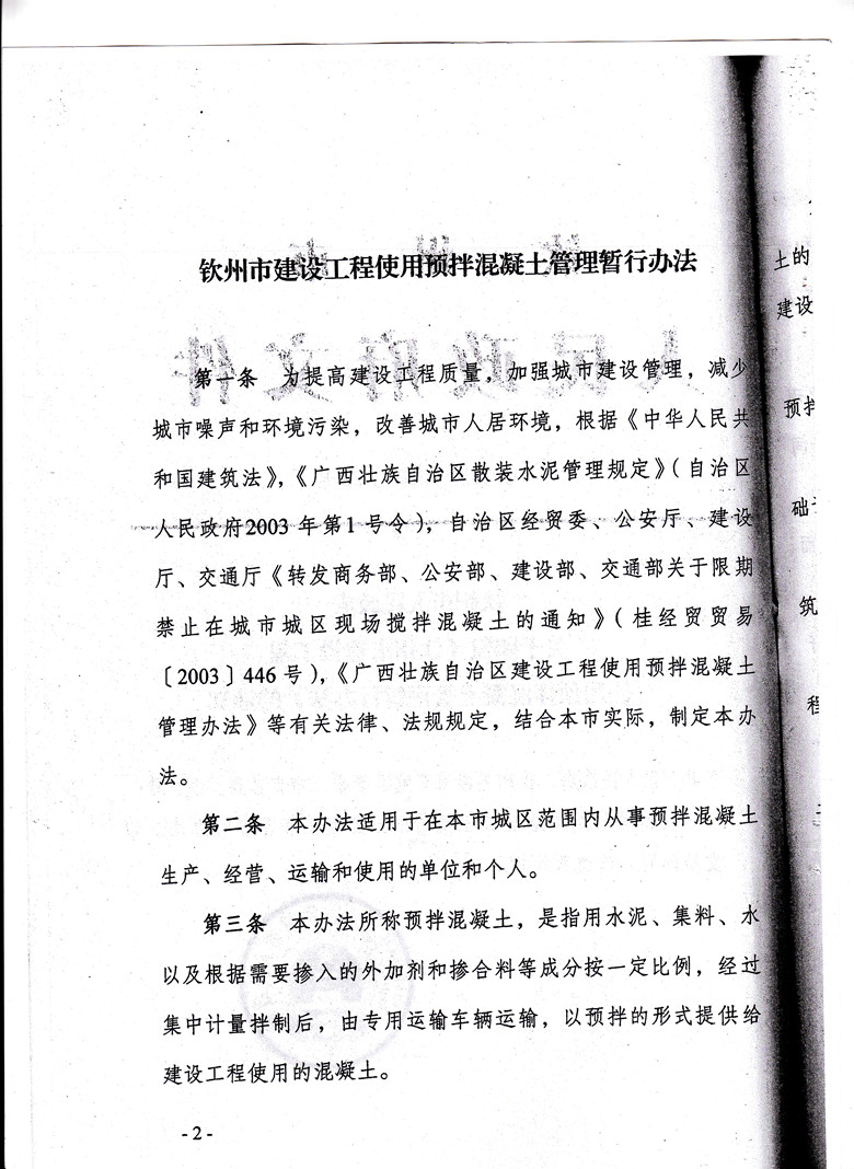 钦州市建设工程使用预拌混凝土管理暂行办法